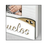 Marco madera con el texto Abuelos tallado en madera, adornado con corazones en relieve y decorado con un color blanco liso mate. Perfecto para regalar en una ocasión especial.